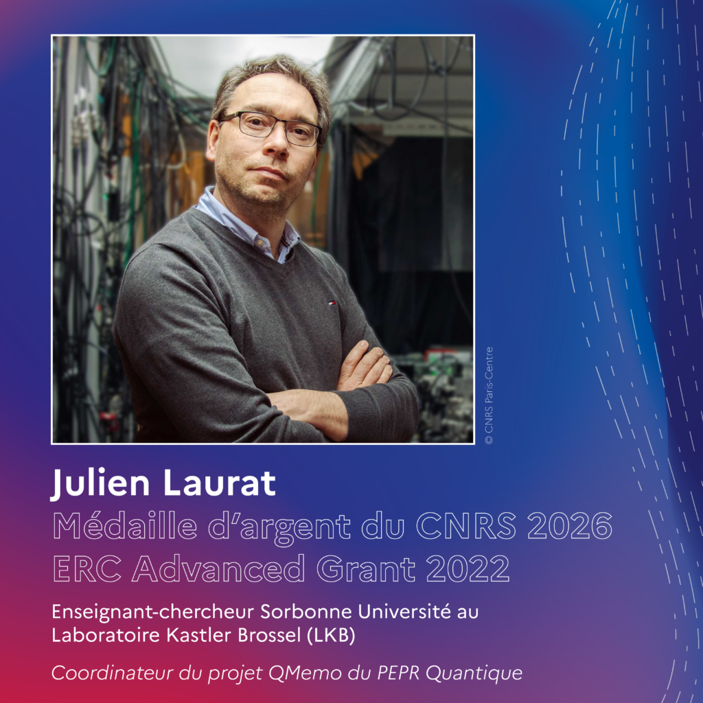 Professeur à Sorbonne Université au Laboratoire Kastler Brossel (LKB, CNRS / Collège de France / ENS-PSL / Sorbonne Université) et coordinateur du projet QMemo du PEPR Quantique, Julien Laurat a reçu la médaille d’argent du CNRS 2026.
