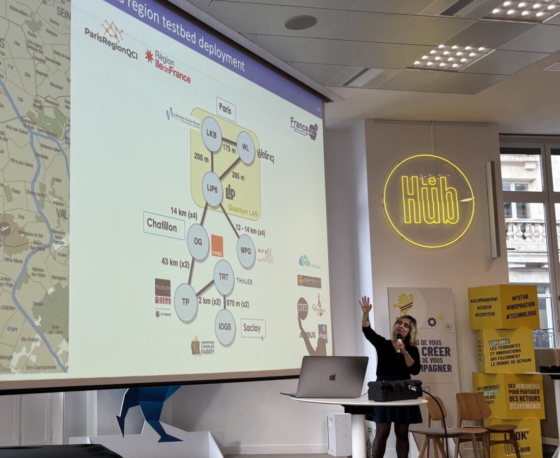 Eleni Diamanti, CNRS research director at LIP6 (CNRS / Sorbonne University) and co-leader of QCommTestbed, gave a lecture on quantum communication. She mentioned the quantum network deployed in the Ile-de-France region, which establishes connections between laboratories in Paris (LKB, LIP6 and Welinq), Chatillon (Orange) and Saclay.