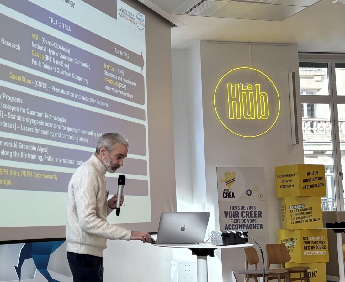 Frédéric Barbaresco, quantum algorithms expert at Thalès, highlighted the MetriQs-France programme. With a budget of €13 million, the programme’s mission is to coordinate the development of measurement standards adapted to quantum technologies and enabling technologies, as well as the evaluation of these emerging technologies. Tanguy Sassolas, head of the quantum and high-performance computing programme at the CEA, then gave a presentation on Q-Loop. This programme aims to meet the challenge of scaling up solid-state qubit control and readout chains. Finally, Franck Balestro, professor at the University of Grenoble Alpes, spoke about the QuantTEdu-France programme. This programme supports the emergence of new talent and the adaptation of training in quantum science and technologies.