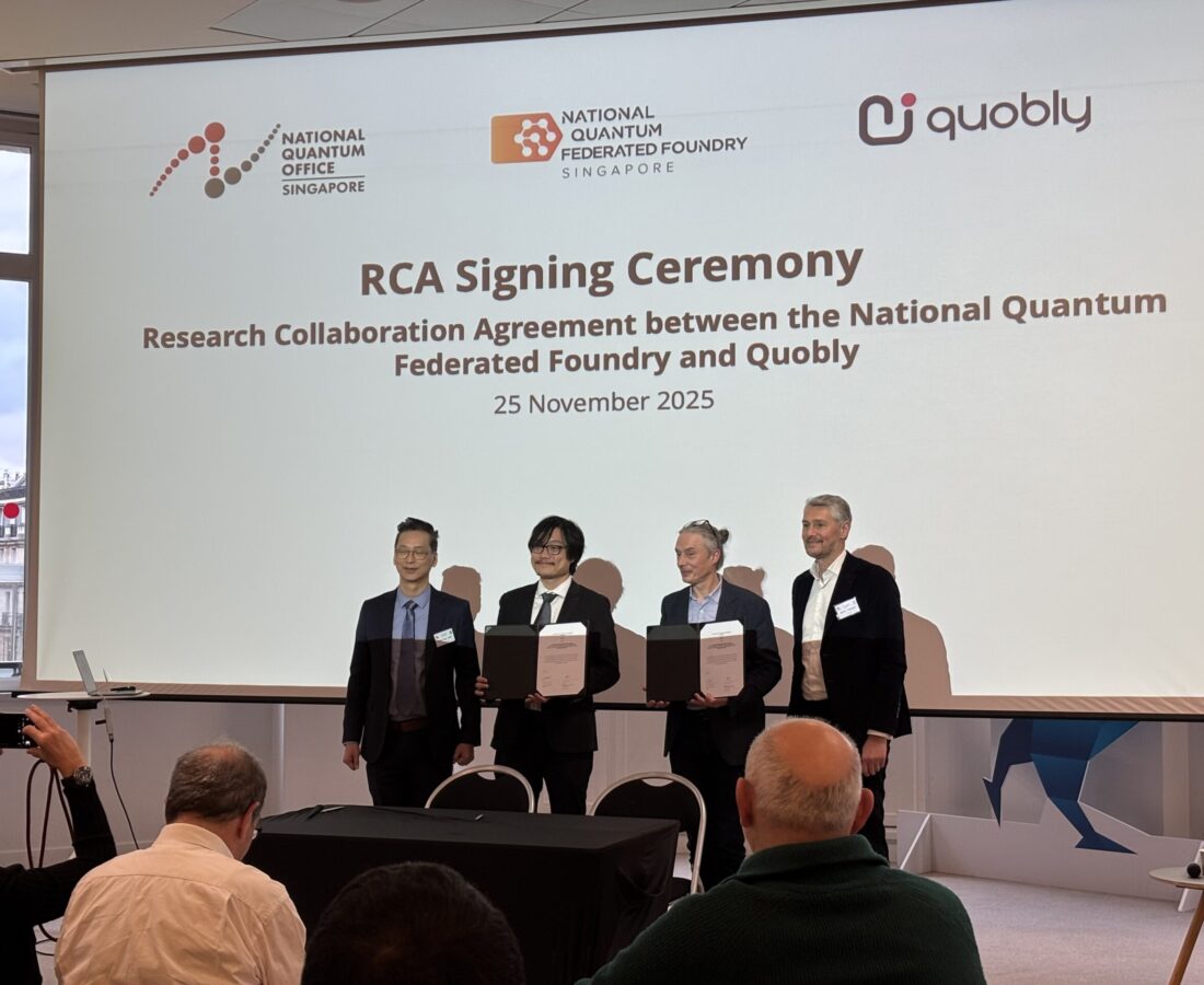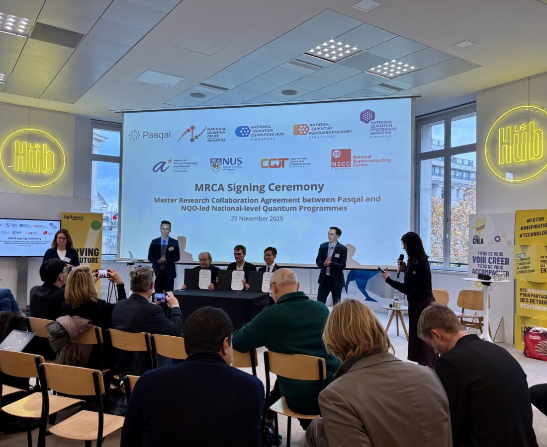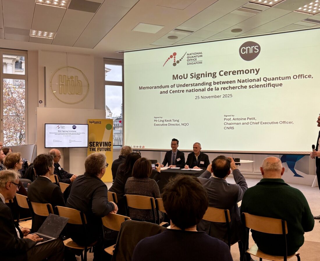 In addition, the symposium formalised two new collaborations between research institutions and industrial partners in both countries. The start-up Pasqal and Singapore’s national quantum programmes led by the NQO* signed a Master Research Collaboration Agreement (MRCA). This agreement establishes a long-term research framework between the French start-up, which specialises in quantum computing and neutral atom processors, and the Singaporean programmes. The objectives of this collaboration are to develop quantum error correction protocols, algorithms and hardware improvements.