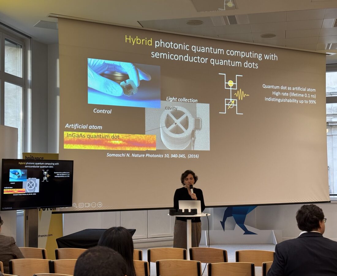 This topic was also the subject of a specific keynote speech. This was delivered by Pascale Senellart, CNRS research director at the Centre for Nanosciences and Nanotechnologies (C2N, CNRS / Paris Saclay University), co-founder of Quandela and leader of the PEPR’s OQuLus project. Her speech focused on hybrid photonic quantum computing with quantum dots.