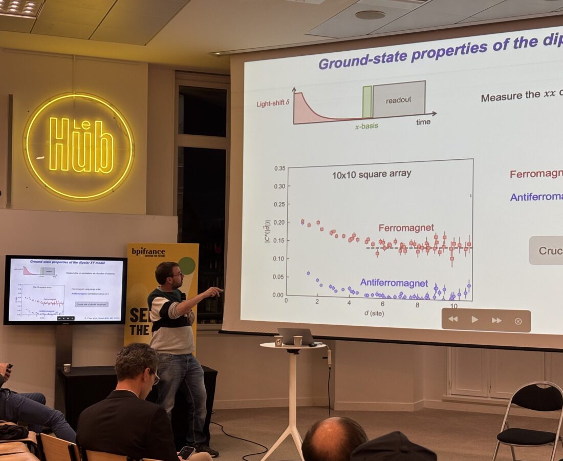 Iordanis Kerenidis, CNRS research director at the Institute for Research in Fundamental Computer Science (IRIF, CNRS / Paris Cité University) and co-founder of the start-up Quantum Signals, took part in the session on quantum software and algorithms. He is involved in the PEPR Quantum programme via the EPIQ project. On the hardware aspect, Thierry Lahaye, CNRS Research Director at the Charles Fabry Laboratory (LCF, CNRS / IOGS), co-founder of Pasqal and member of the QubitAF project, gave a presentation on cold atoms.